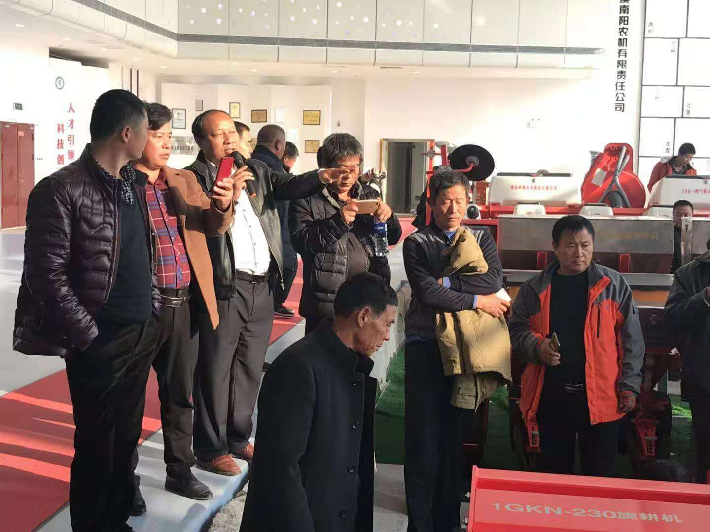 亞澳公司總經理助理郭靖和銷售部經理王紅衛負責接待,一行70多人來到大廳,首先郭總給大家介紹了亞澳農機的企業文化及發展歷程,并介紹了展廳里所展示的代表性機具。